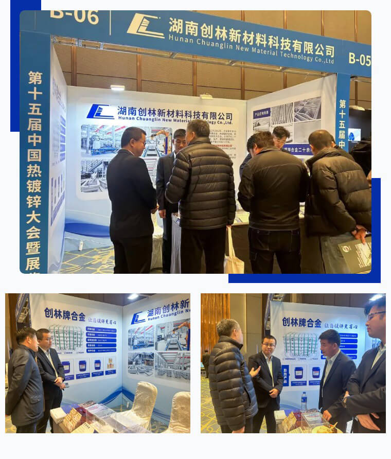 會上,湖南創(chuàng)林新材料展示了多款熱鍍鋅合金產(chǎn)品,這些產(chǎn)品在提高鍍鋅效果、降低鋅耗等方面表現(xiàn)出色,吸引了不少行業(yè)內(nèi)人士的關(guān)注。總經(jīng)理周業(yè)翔攜團隊熱情接待參觀嘉賓,并就產(chǎn)品技術(shù)、市場開拓、合作發(fā)展等事宜與嘉賓進行探討分享,交流互鑒。